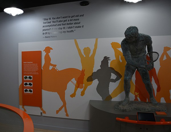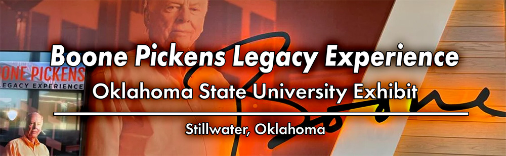 The Boone Pickens Legacy Experience features stories from Pickens’ remarkable life told through interactive and visually rich exhibits and an expansive collection of artifacts, gifts, awards, mementos and memorabilia amassed over Pickens’ lifetime.