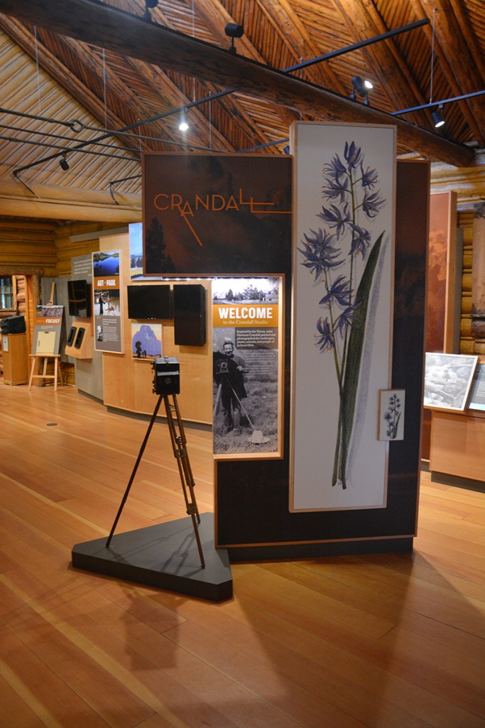 The Jenny Lake Visitor Center is housed in the historic Crandall Studio. Built in the late 1920s, this structure served as Harrison Crandall photography studio. Here, Crandall sold photographs and postcards of the Teton Range as park mementos while serving as the park’s official photographer. Capturing the spirit of Crandall, today the Jenny Lake Visitor Center serves as an art gallery and museum, illustrating the role that art has played in the conservation of the Teton Range.